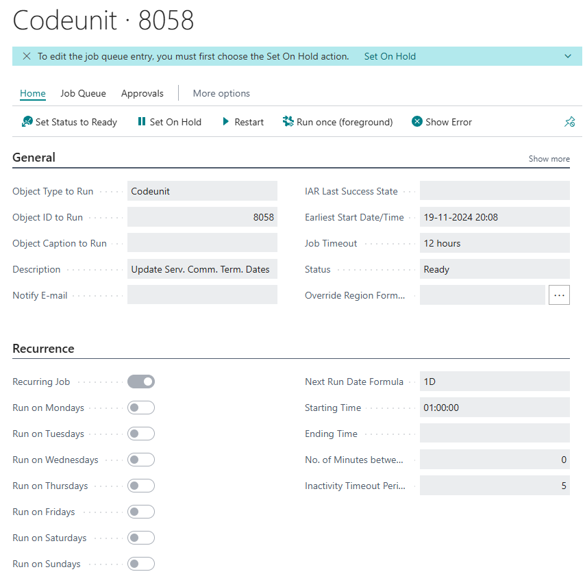 The installation also creates a record in the Job Queue Entry: “Update Serv. Comm. Term. Dates”.