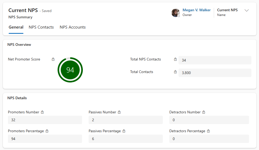 Arrange them on your Contact form so you can see the information. Note that the NPS Type will be locked as the value is always set by the formula above.