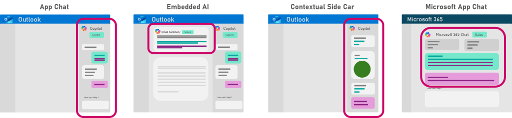 Copilot for Sales delivers its capabilities through multiple experience types, each designed for different interaction patterns: