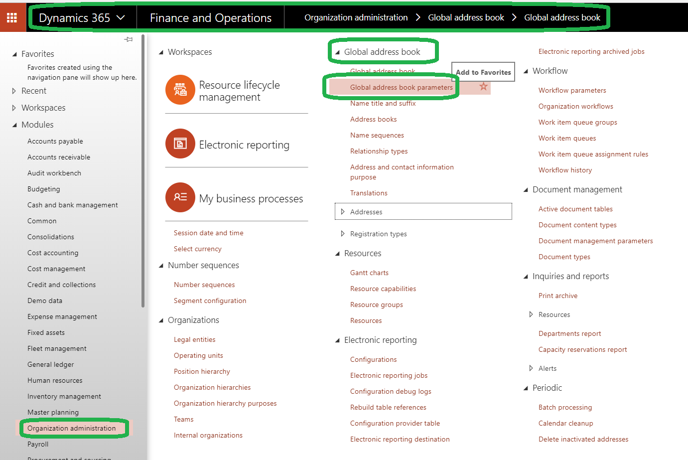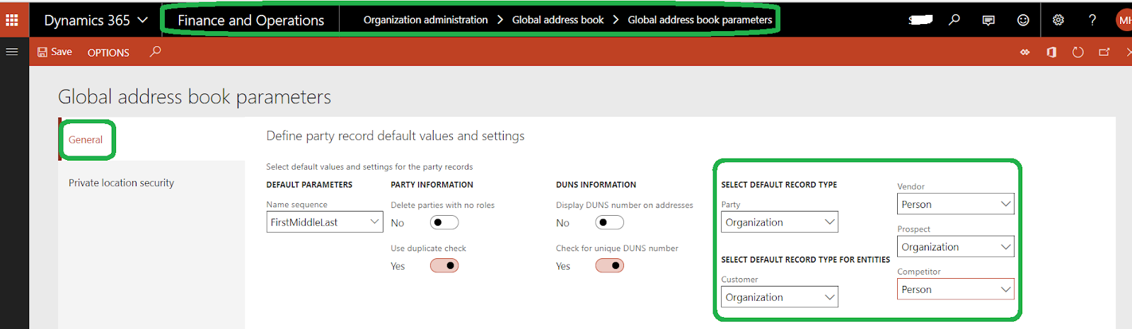 navigate to organization administration / global book address /global book address parameters