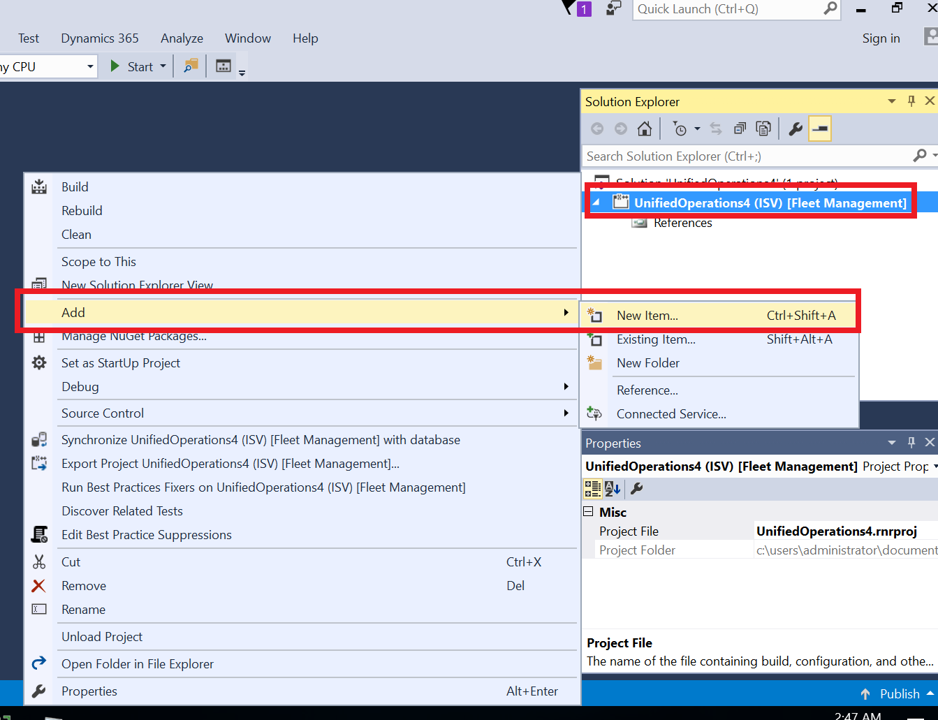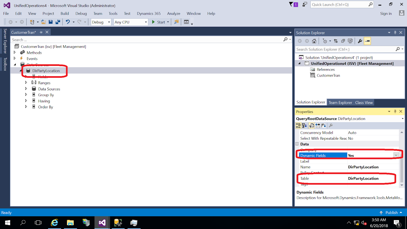 select data model in dynamics 365 items and choose query item