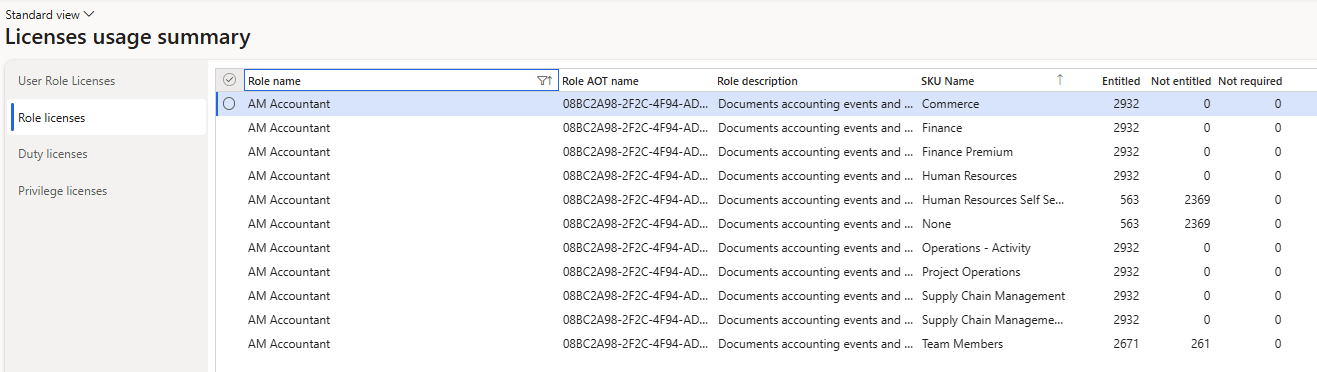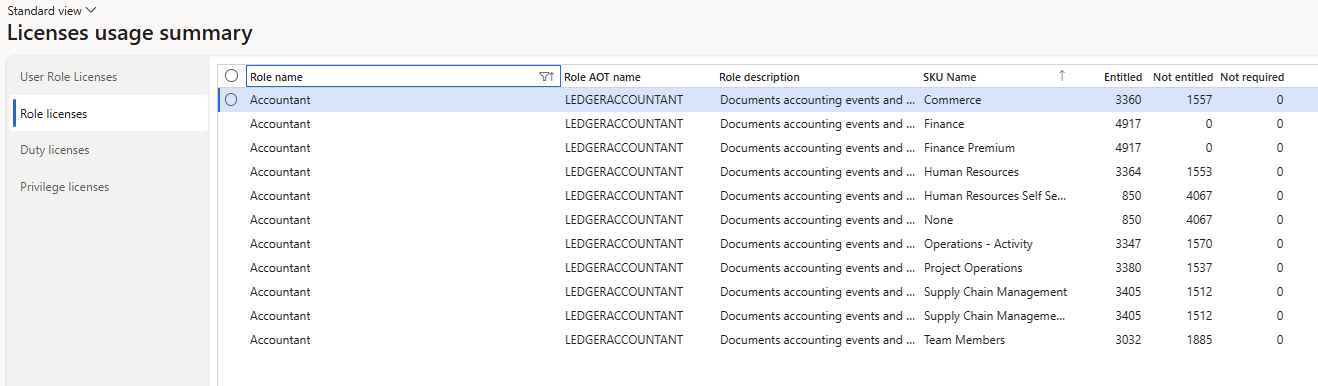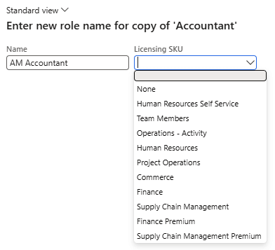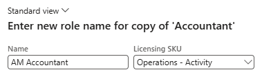The scenario in this case is that I want to duplicate the Accountant role, currently this role requires either a ‘Finance’ or ‘Finance Premium’ license but I would really like to require an ‘Operations – Activity’ license: