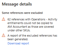 With the warning message, D365FSC will report the number of duty references that had to be removed as well as give you the option to download a more detailed report: