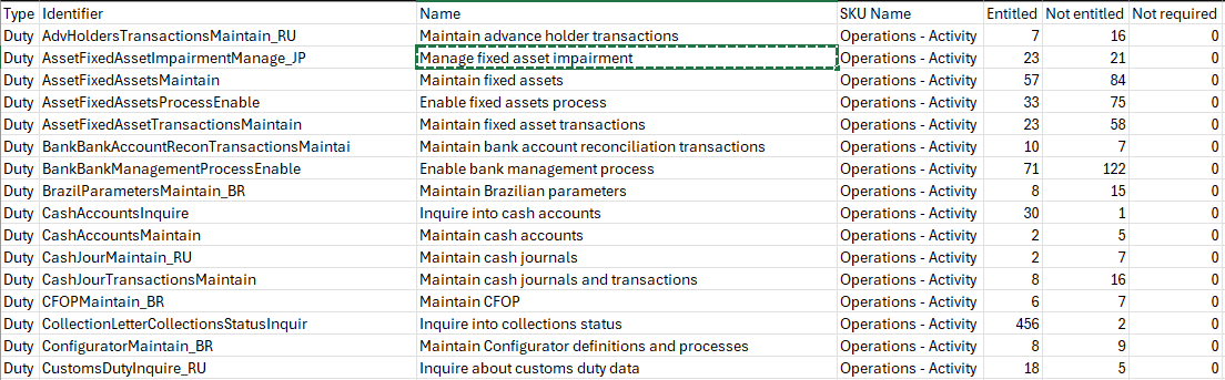 The excluded references file contains the duties that were removed because they required a higher license than ‘Operations – Activity’: